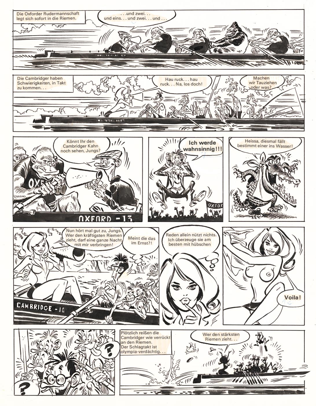 RICCARDO RINALDI: Die Pichelsteiner: Wetten dass…? page 9 of the story, published in Prima (Primo) #15 / 1971, 31,7 x 46,2 cm € 390,- ($ 437) |