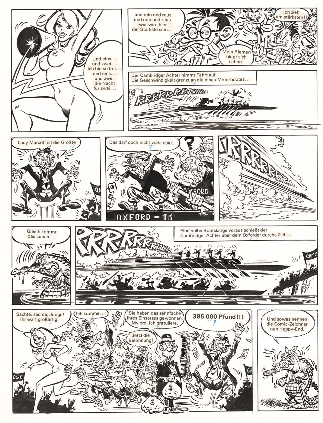 RICCARDO RINALDI: Die Pichelsteiner: Wetten dass…? page 7 of the story, published in Prima (Primo) #15 / 1971, 31,7 x 46,2 cm € 450,- ($ 504) |