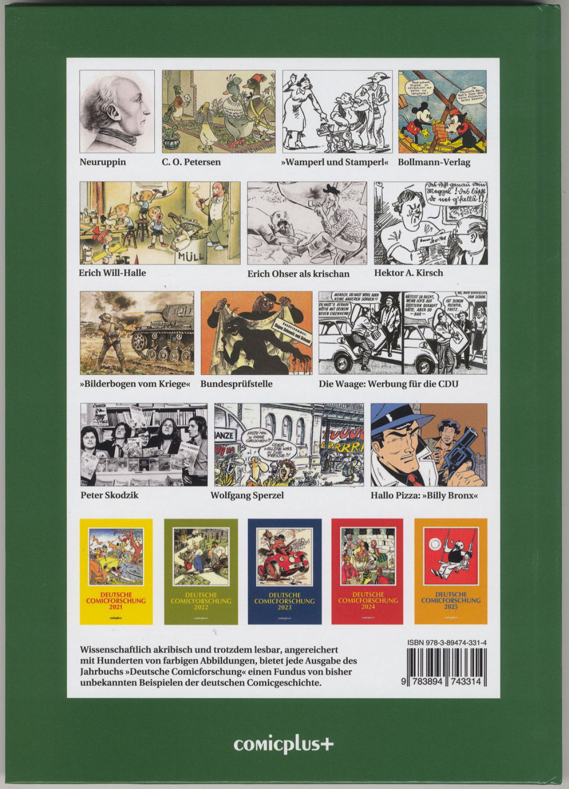 „Deutsche Comicforschung“ widmet sich Jahr für Jahr längst vergessenen Zeichnern, Druckereien, Serien, Strömungen und Kuriositäten. Immer wissenschaftlich fundiert, aber hervorragend lesbar, reich bebildert und seit Jahrzehnten unverzichtbarer Teil der Comicszene.