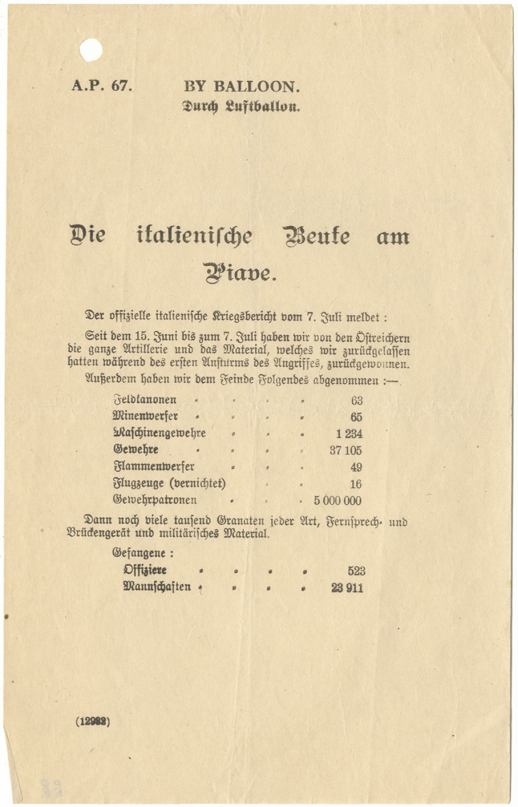 Die italienische Beute am Piave, British leaflet from World War One
