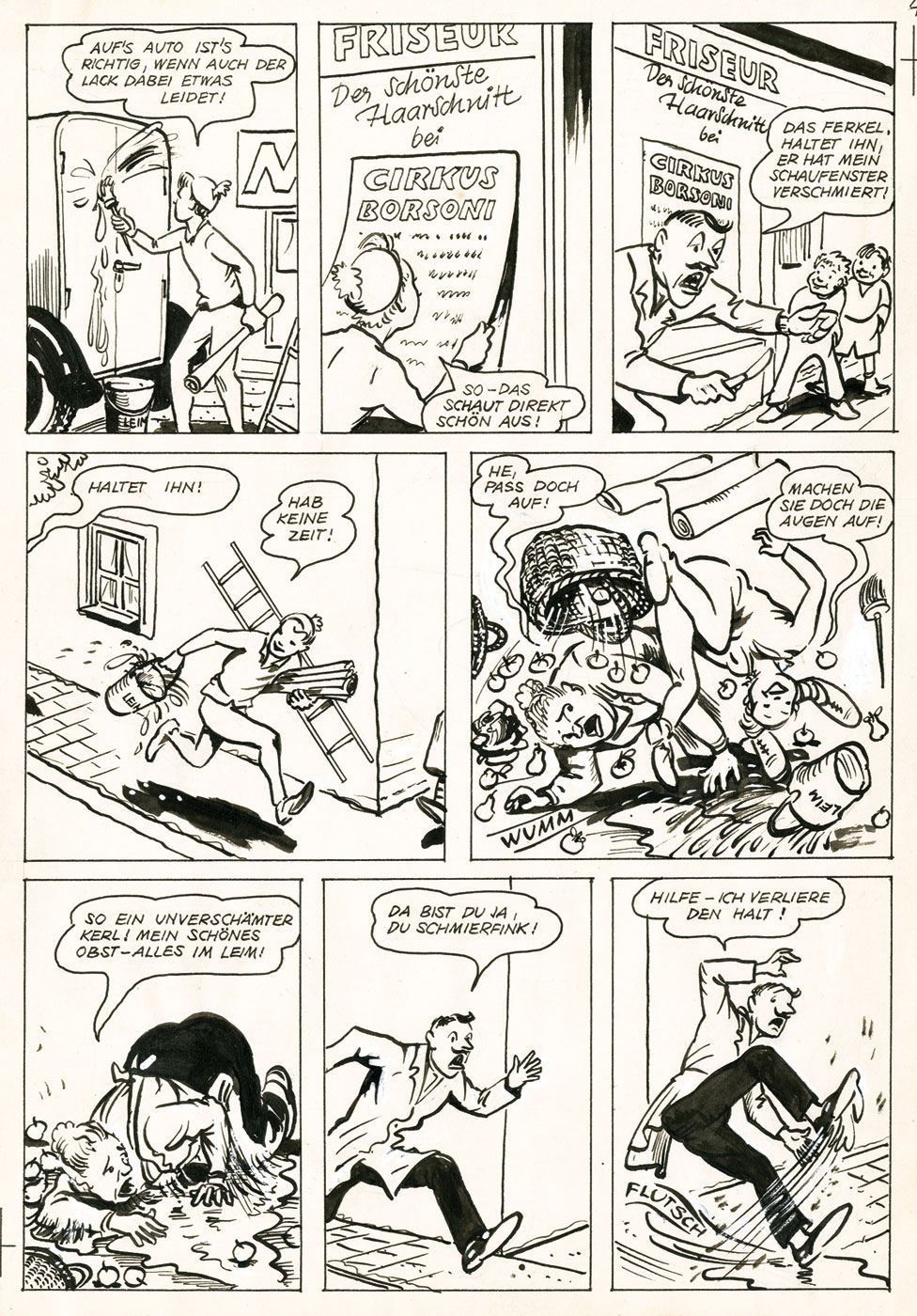 unknown artist: Der Quacksalber page 9, published in in Fix und Foxi Weihnachtsheft, 1959, 32 x 46 cm, very rare! € 290,- ($ 325) |