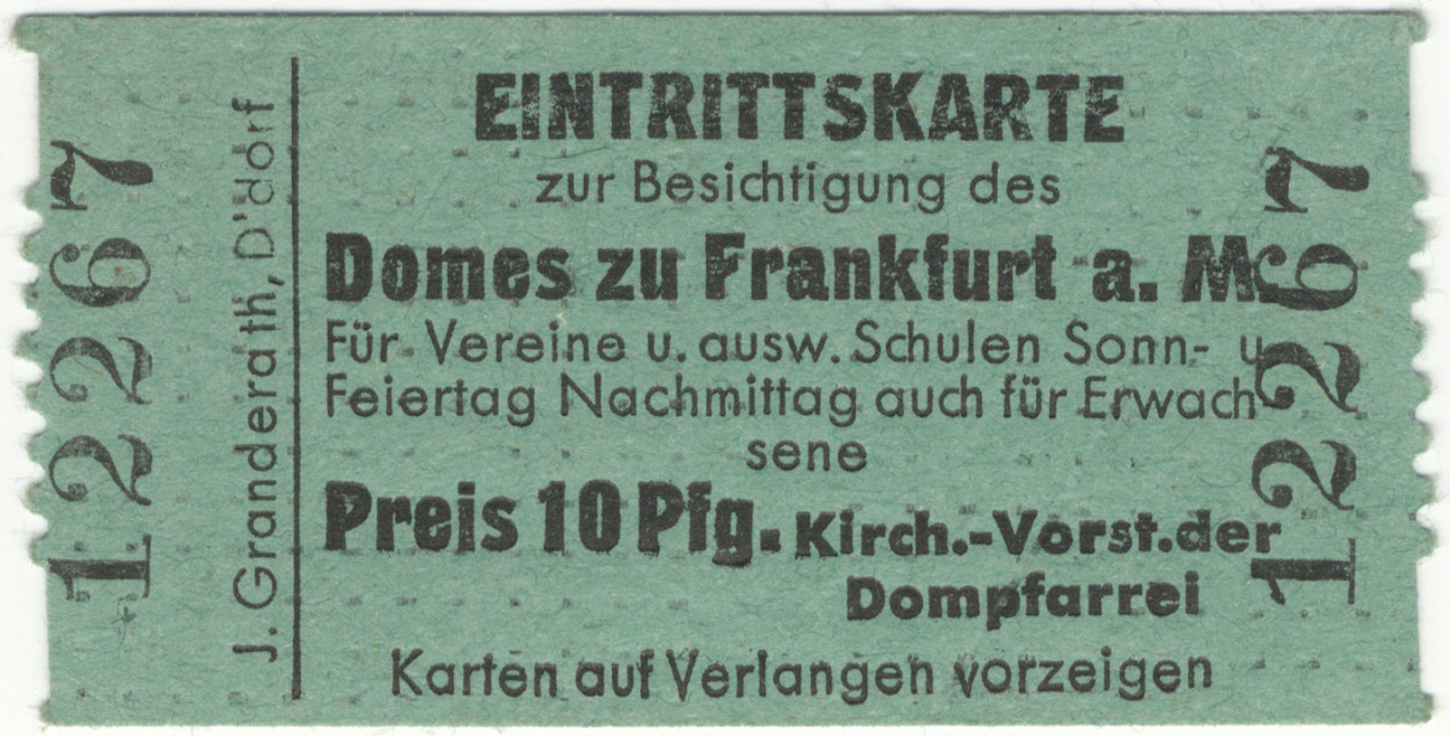 Eintrittskarte für den Dom zu Frankfurt, vermutlich 1930er Jahre (nicht sicher)