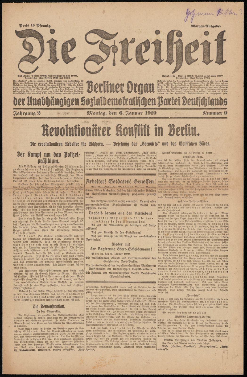 Die Freiheit, Ausgabe vom 6. Januar 1919