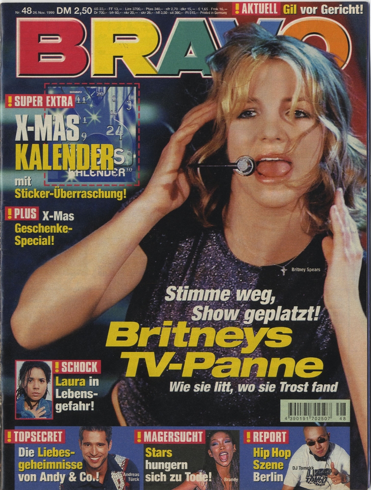 Bravo, 1999 Nr.48, Britney Spears, Westlife Poster, Ricky Martin Poster, Brad Pitt, German Hip Hop, Gil, Kellys, Mia, Creed