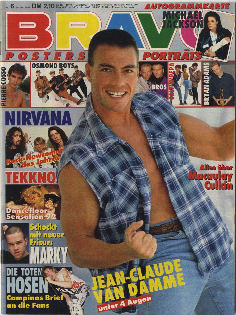 Bravo, 1992 Nr. 6, Byan Adams, Osmond Boys, Bros, Pierre Cosso, Salt´ n´Peppa, Marky Mark, Tekkno, Michael Jackson Autogrammkarte, van Damme, Vanilla Ice, Toten Hosen, Bon Jovi, u.a.