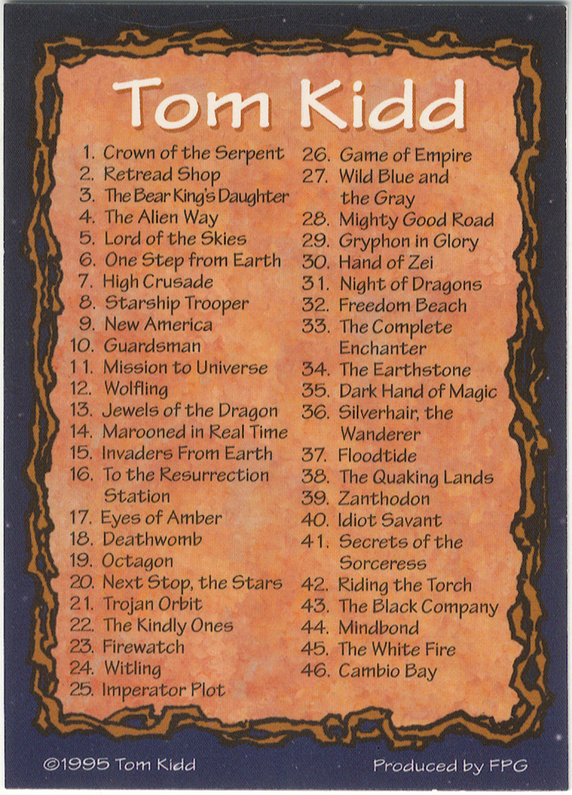 Tom Kidd Trading Cards, FPG, 1995, komplette Serie = 90 Karten