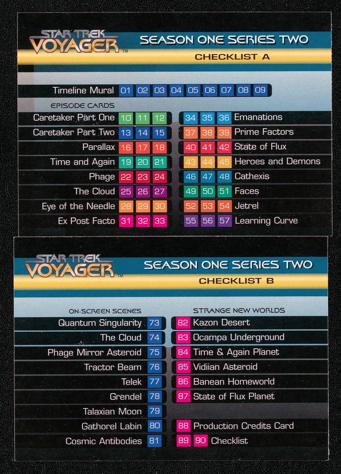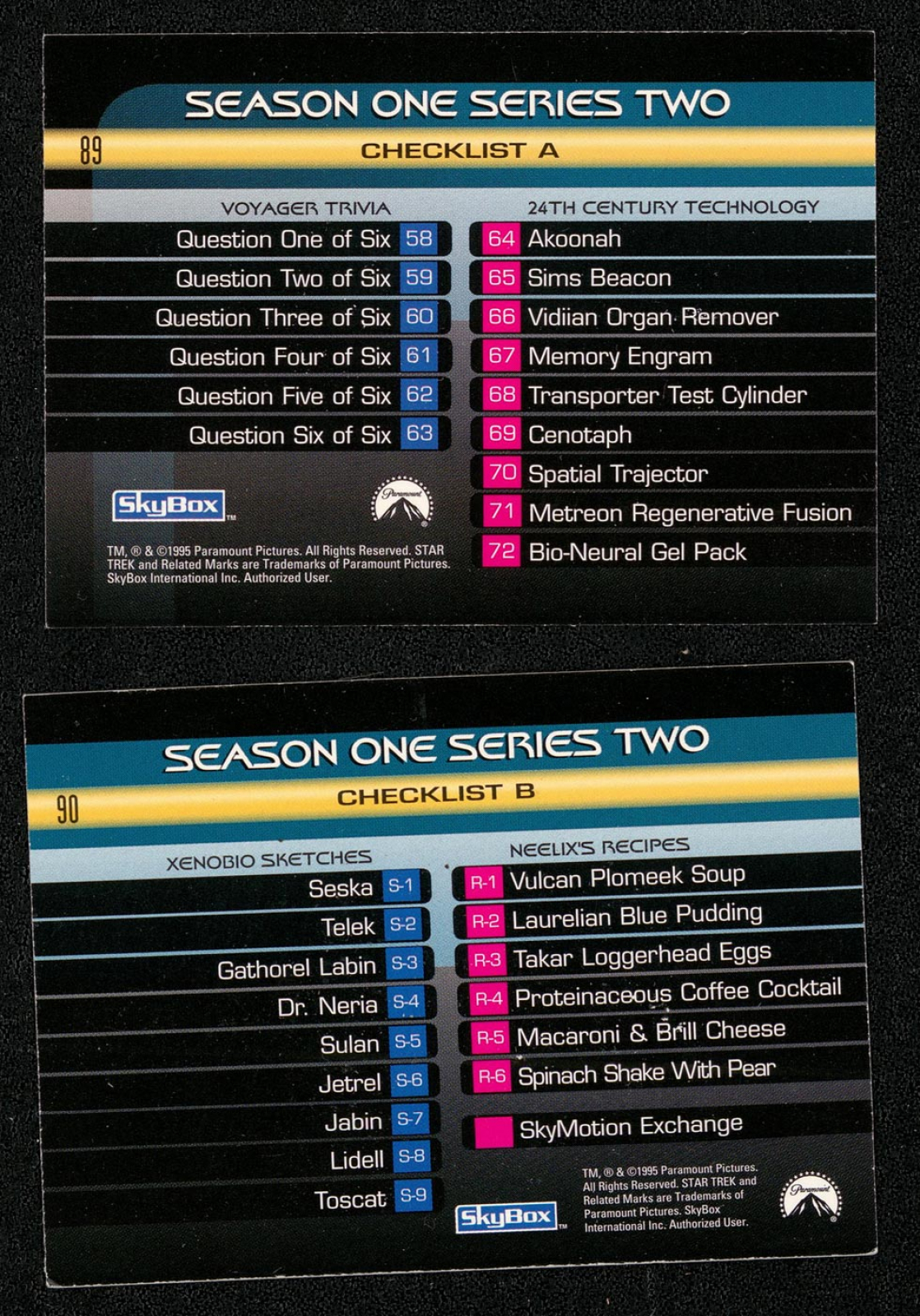 Star Trek, Voyager, Season 1, series 2, Trading Cards, Sky Box, 1995, komplette Serie = 90 Karten (plus Tattoos)