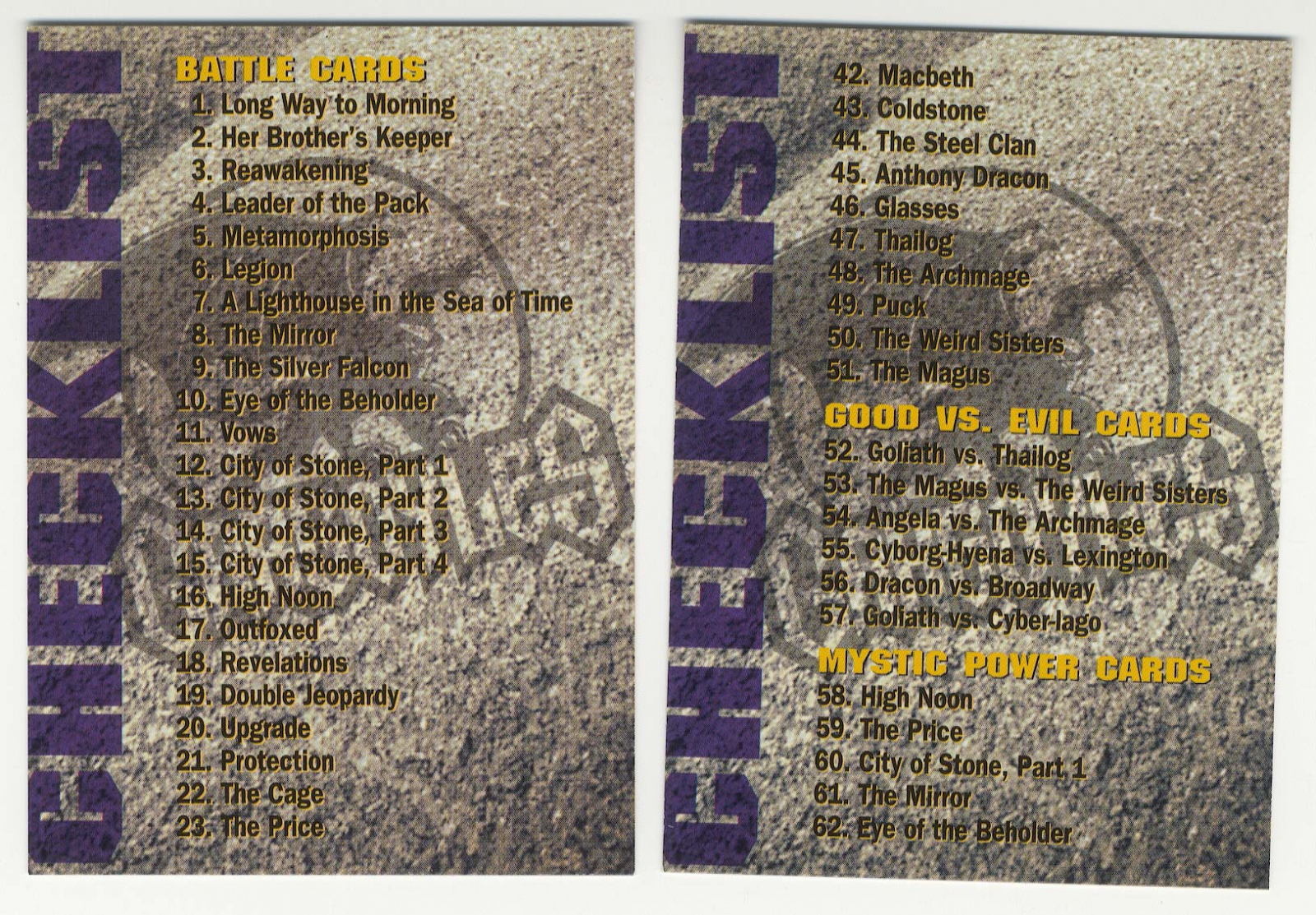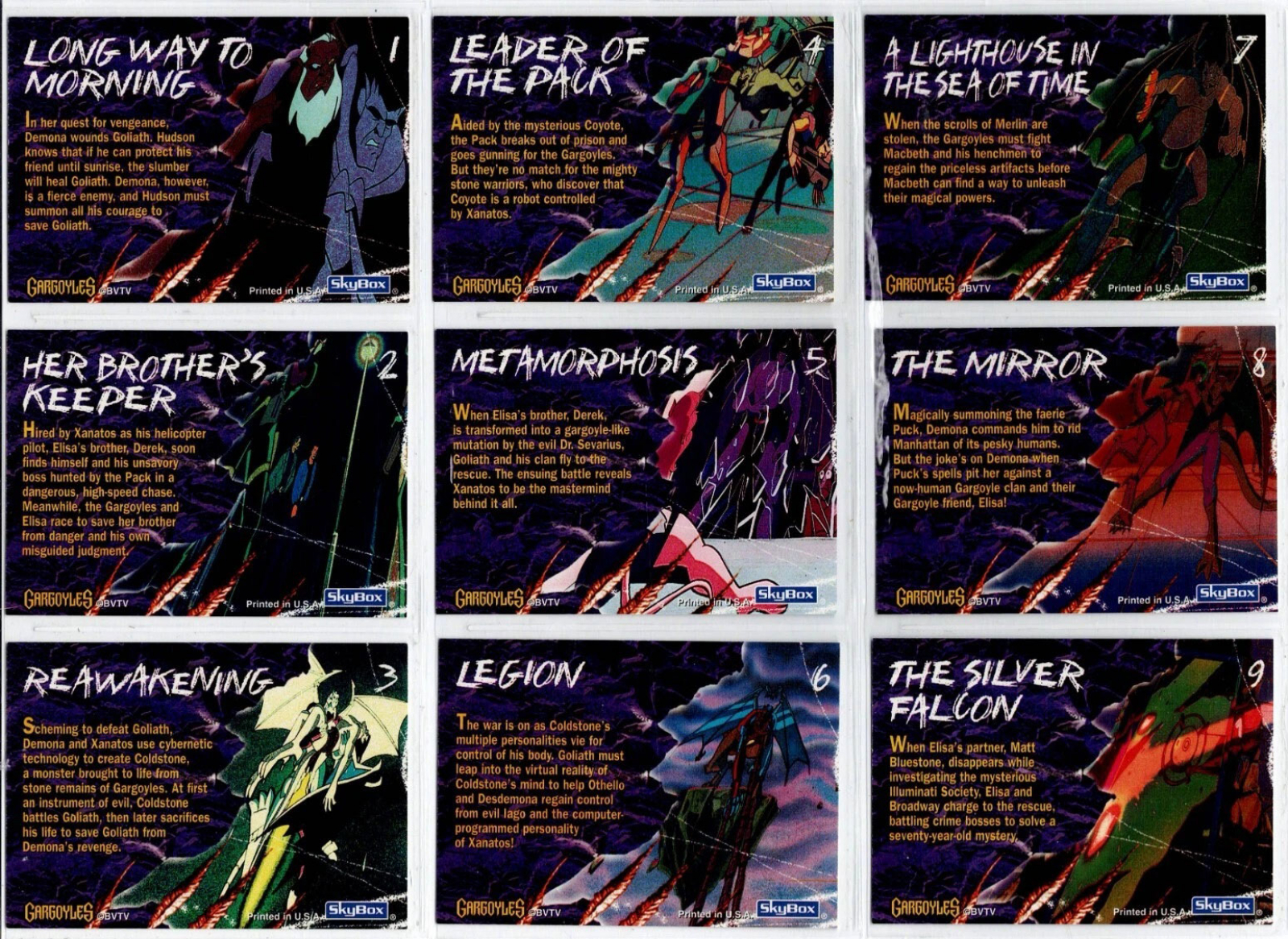 Gargoyles, 2. Serie, Battle Cards, Sky Box, 1996, 75 Karten (= komplettes Base Set), inklusive aller 10 Pop Up-Karten